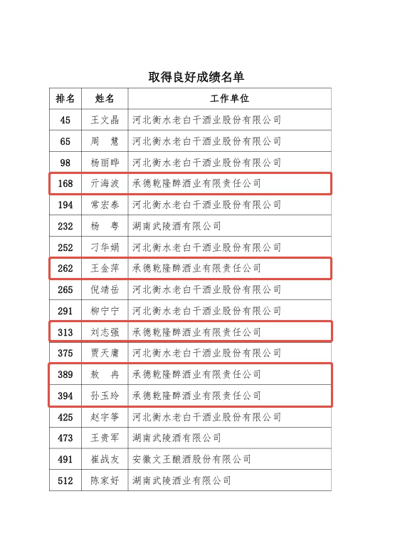 在第五届全国白酒品酒职业技能竞赛中,衡水老白干及旗下四家子公司18位选手稳定发挥,取得良好赛果,被聘任为“2025届国家级白酒评酒委员”;其中腾博会官网酒业孙玉玲、刘志强、王金萍、敖冉、亓海波5位选手参加比赛,通过比赛斩获优异成绩,均被聘任为“2025届国家级白酒评酒委员”。腾博会官网酒业成为河北省除衡水老白干酒业外最多入选人数的酒企,其中,敖冉、亓海波两名选手初次参赛获聘国家级白酒评酒委员。